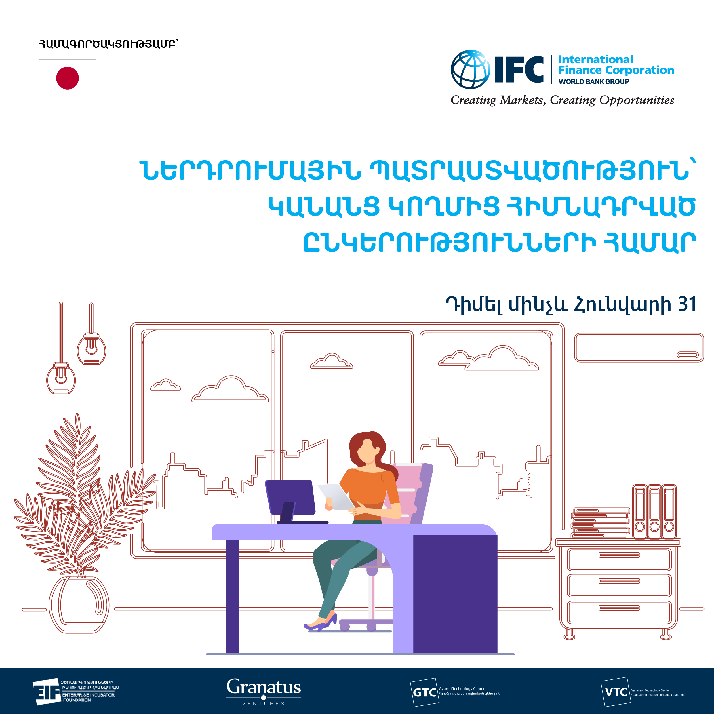 Համաշխարհային բանկի խմբի անդամ Միջազգային ֆինանսական կորպորացիան (ՄՖԿ), Ճապոնիայի կառավարության հետ համագործակցությամբ, հրավիրում է հետաքրքրված կին ձեռներեցներին մասնակցելու  «Ներդրումային պատրաստվածություն կանանց կողմից հիմնադրված ընկերությունների համար» ծրագրին: