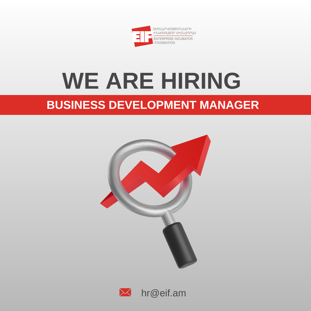 , one of the leading technology and innovation development institutions in Armenia, is seeking a highly motivated Business Development Manager to support the expansion and implementation of strategic initiatives across the high-tech, education, and science ecosystems.